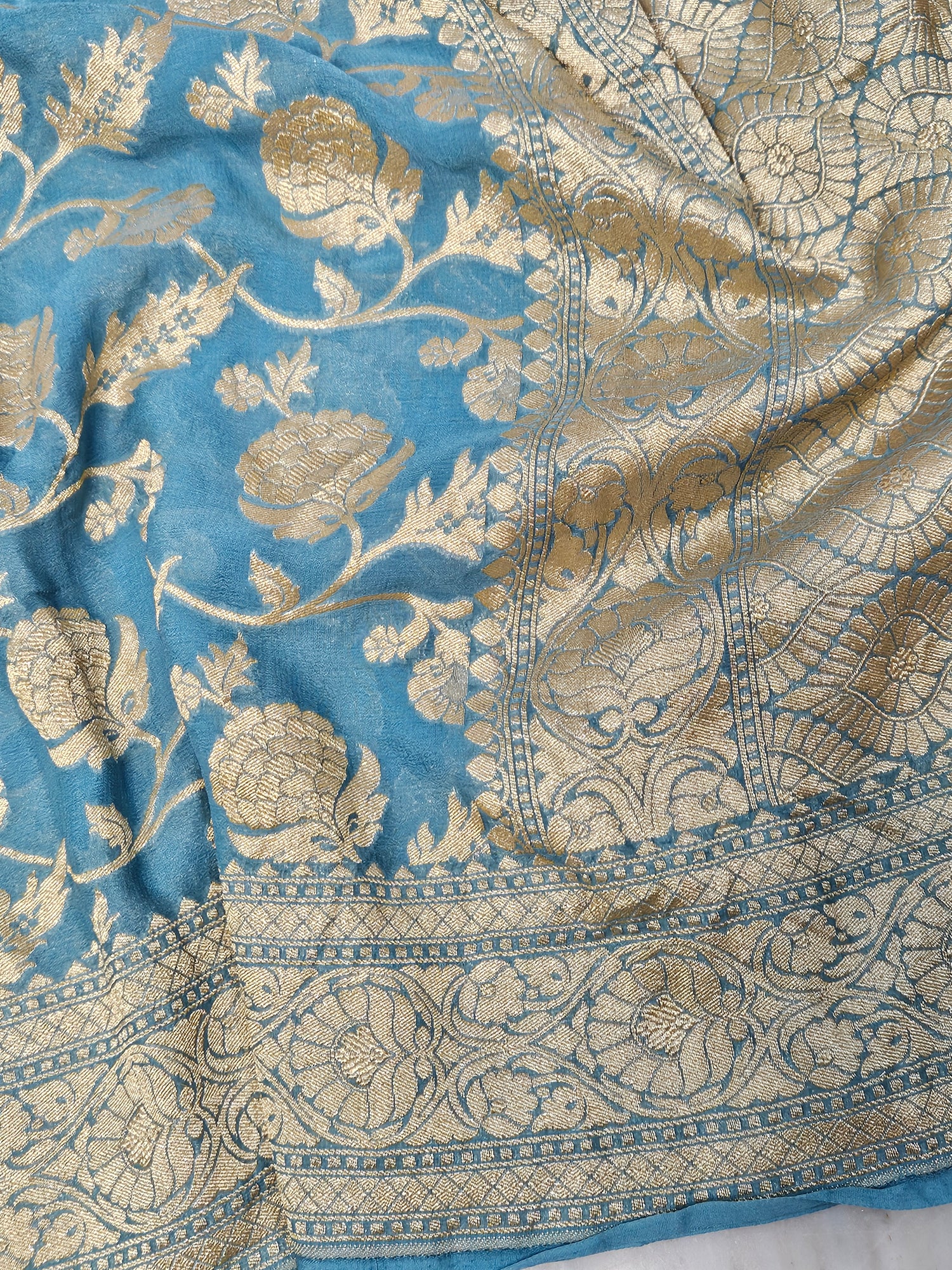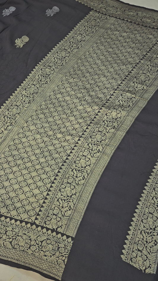 banarasi pure georgette silk woven tested zari saree in Shade of grey