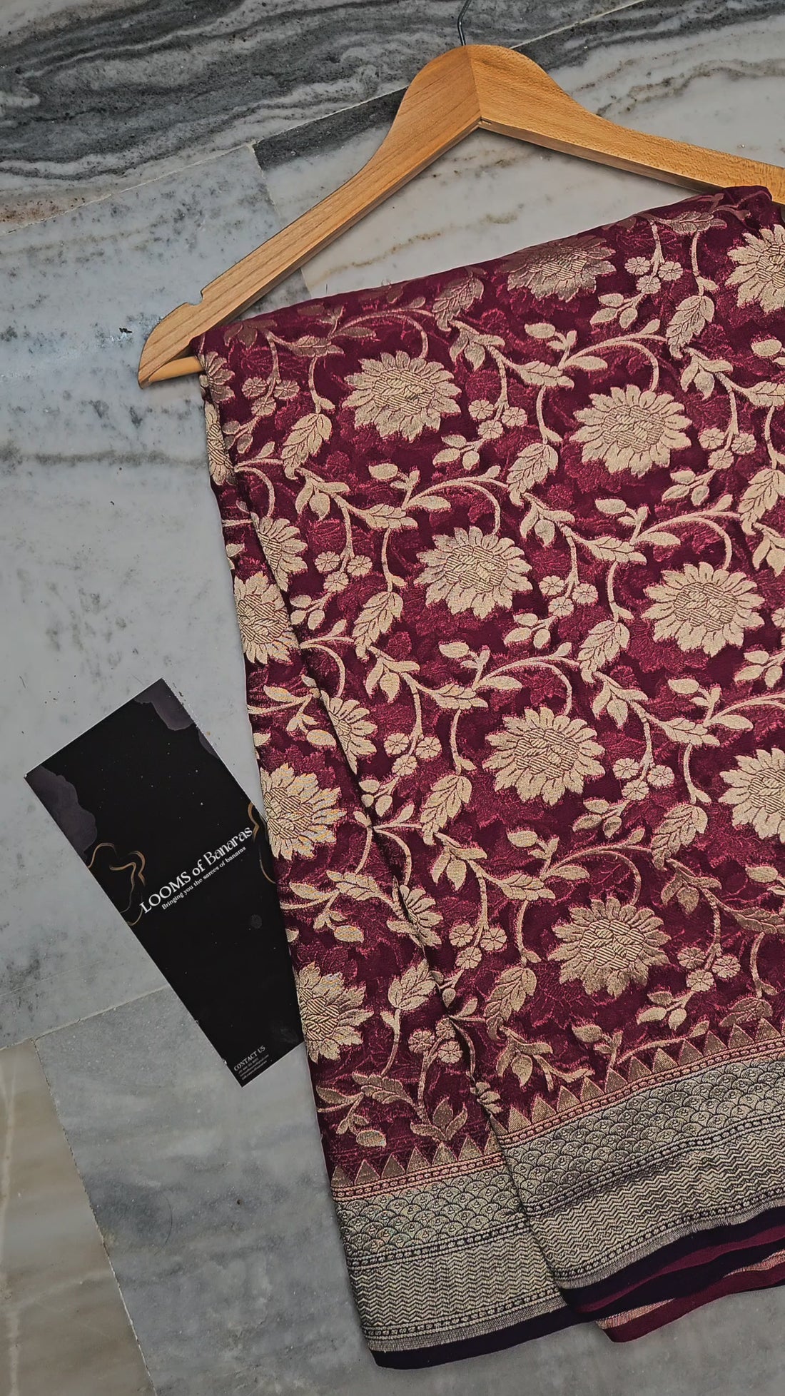 banarasi pure georgette silk woven tested zari saree in Deep maroon