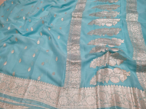 Pure Organza Banarasi Saree Aanchal Border in Sky Blue