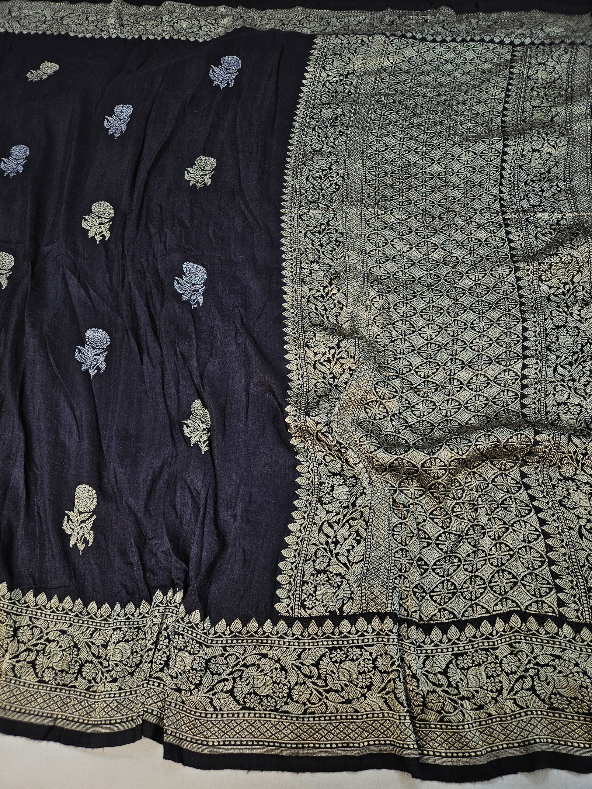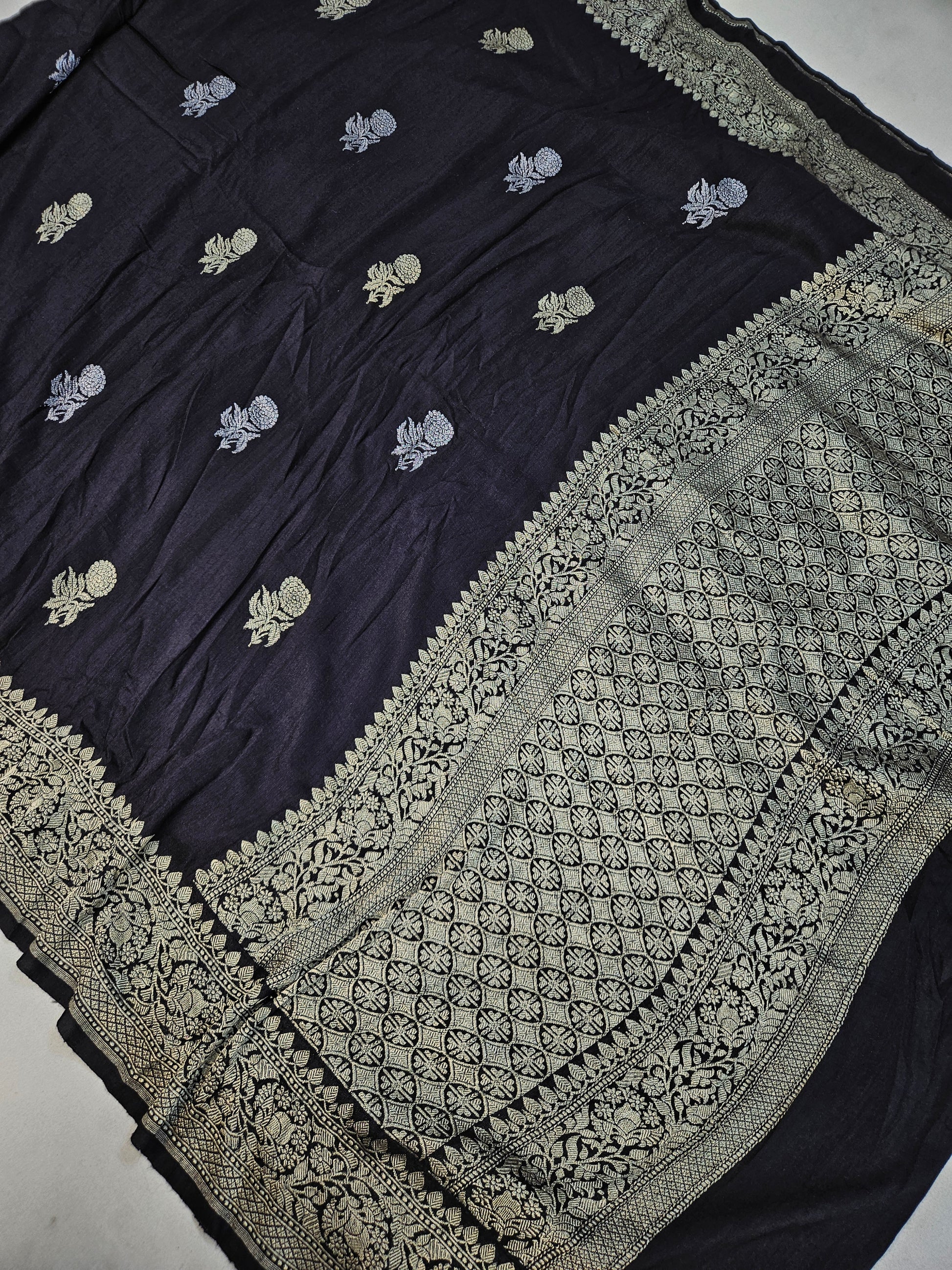handloom pure moonga silk banarasi saree in Black