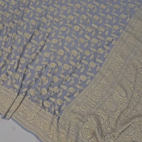 banarasi pure georgette silk woven tested zari saree in Shade of grey
