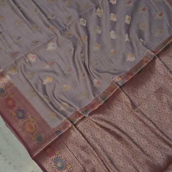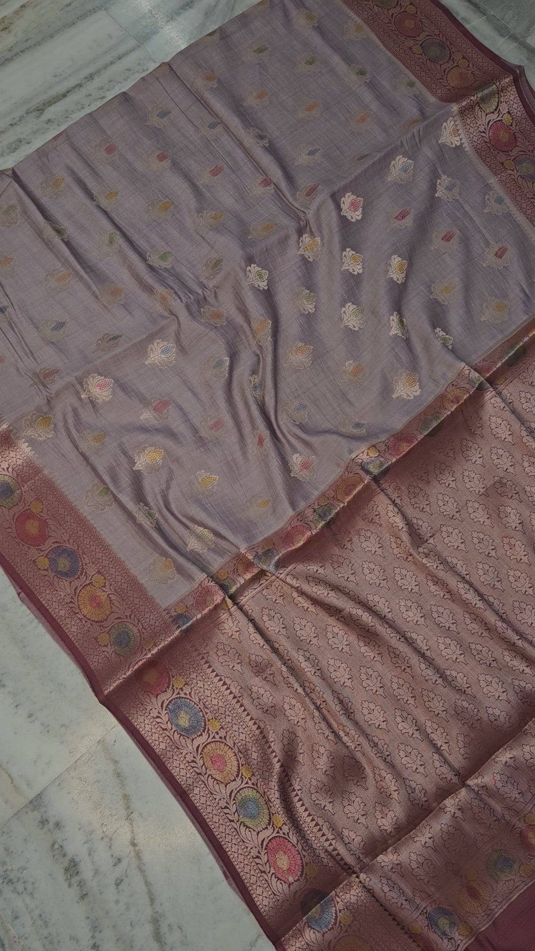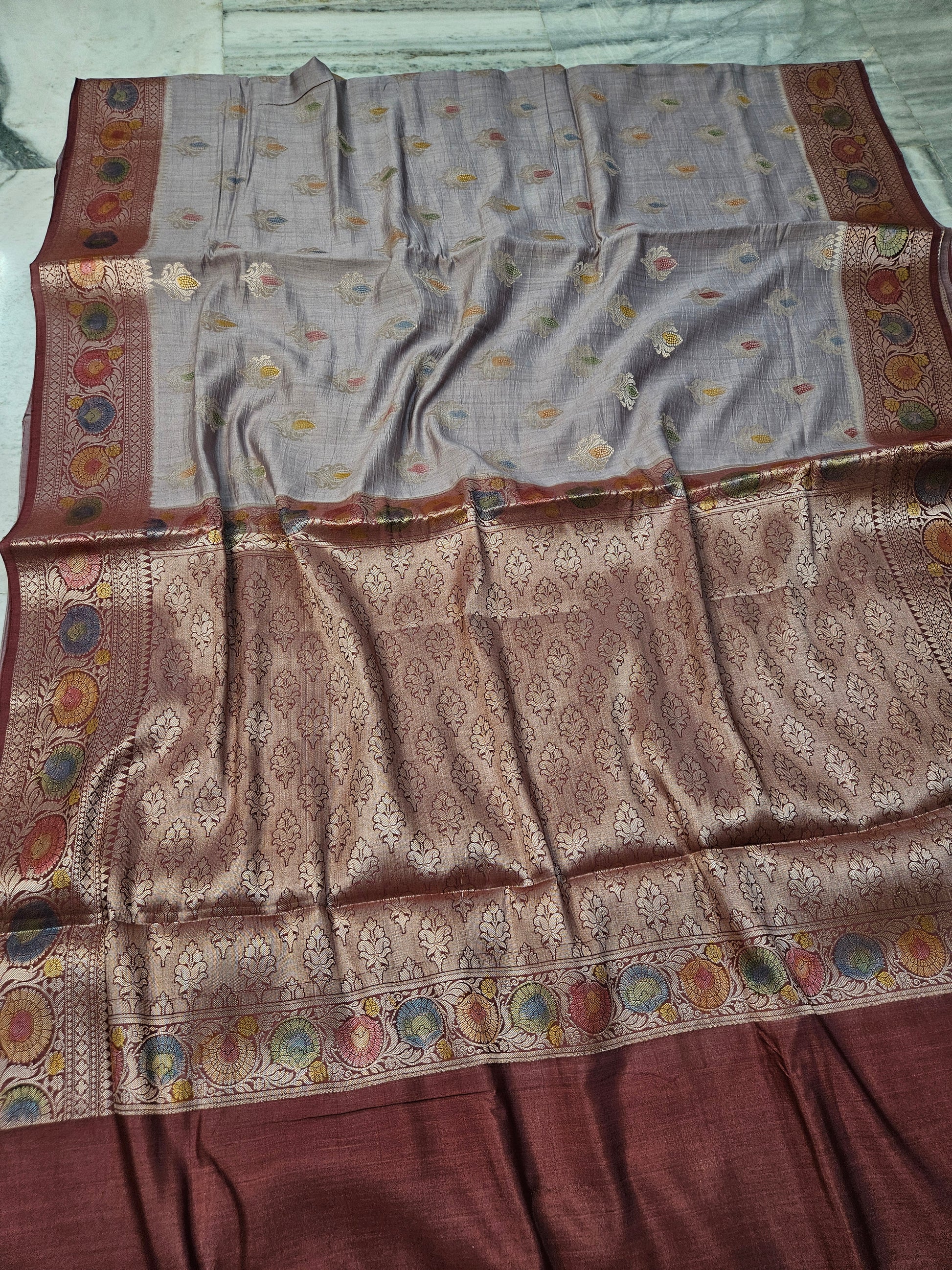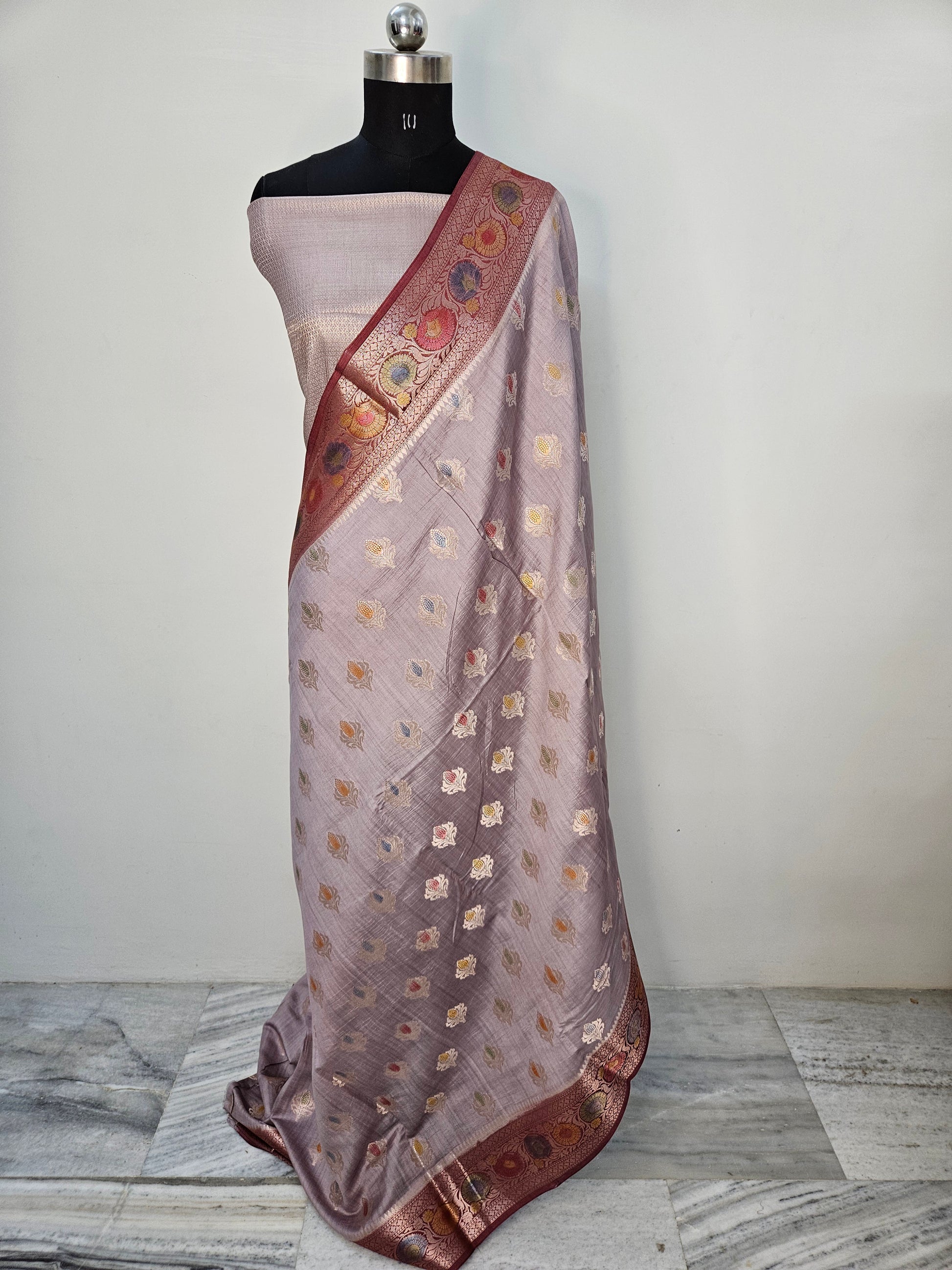Pure Chiniya Silk Woven Buta Handbrush Banarasi Saree