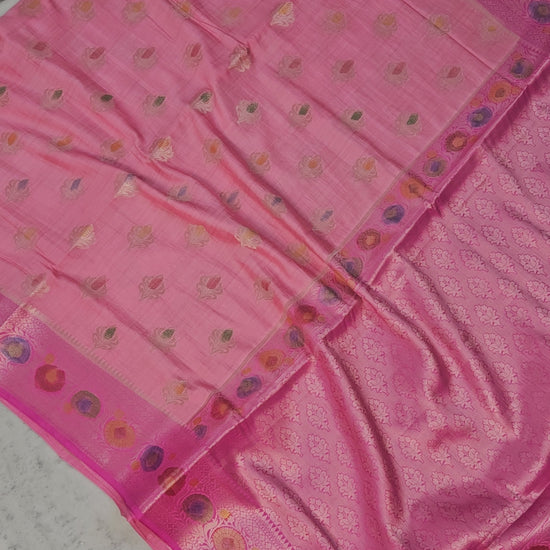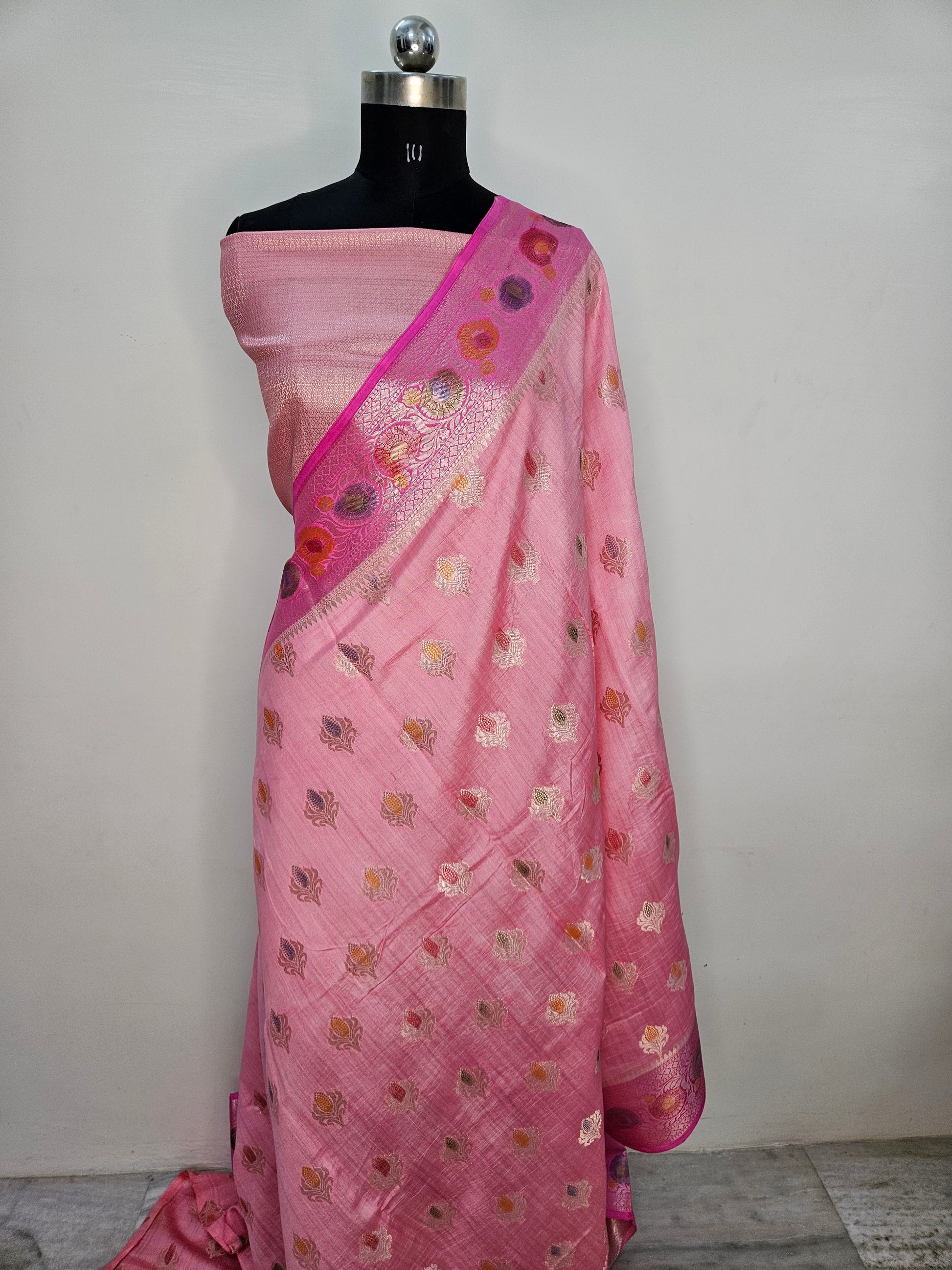Pure Chiniya Silk Woven Buta Handbrush Banarasi Saree