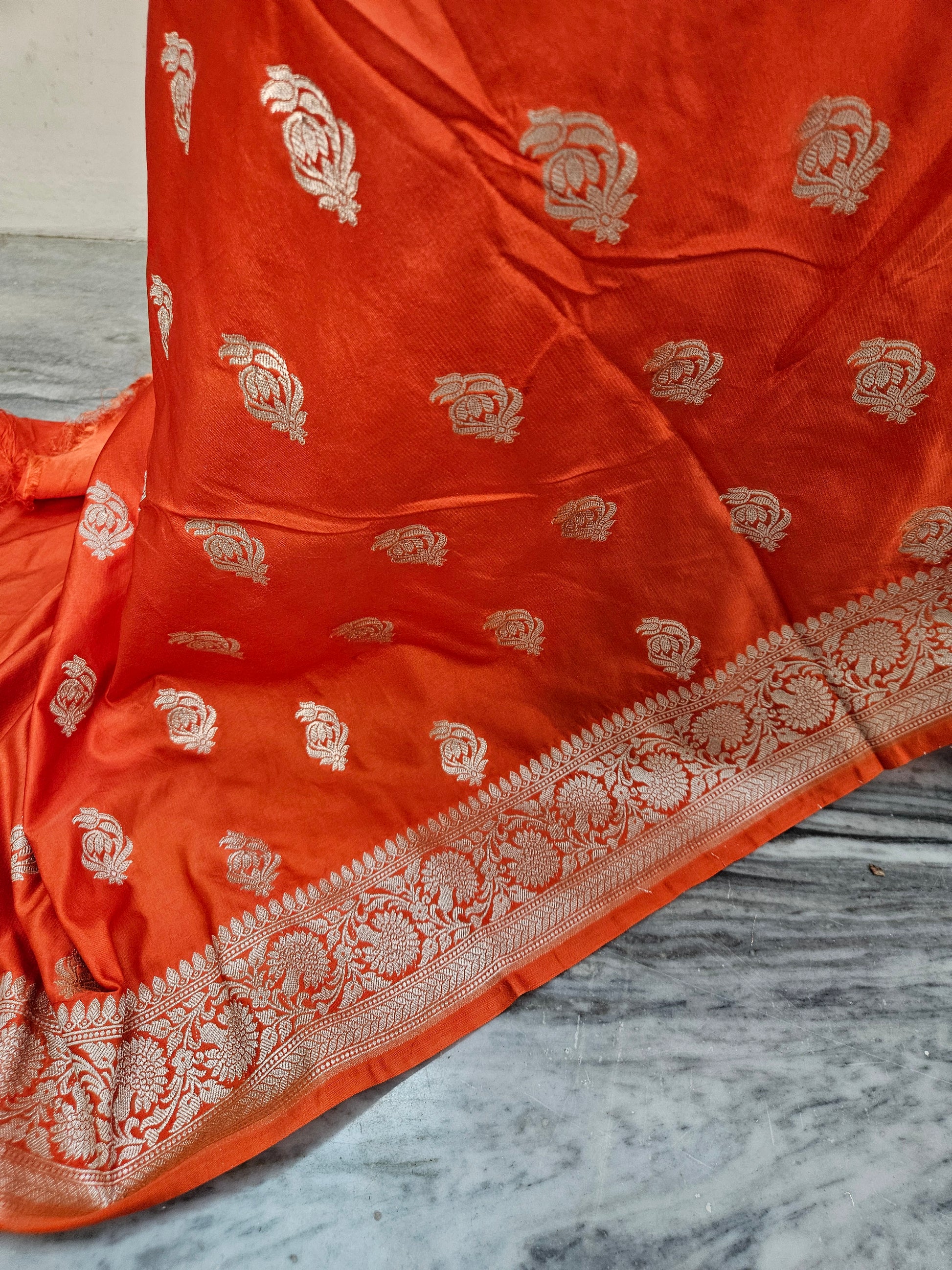 mashru banarasi buta woven saree in orange